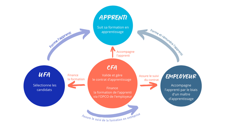 d’apprentissage : il transmet les informations nécessaires, valide le contrat d’apprentissage et assure la gestion administrative et financière de celui-ci.